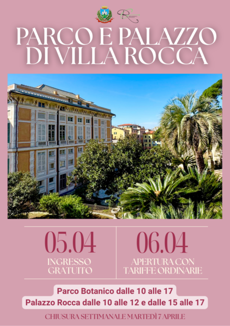 «Chiavari accoglie cittadini e turisti che trascorreranno la Pasqua in città con un’offerta culturale arricchita, grazie anche al rinnovato complesso di Villa Rocca. Per garantire l’accesso agli spazi anche nella giornata di Pasquetta, la chiusura è eccezionalmente posticipata a martedì»